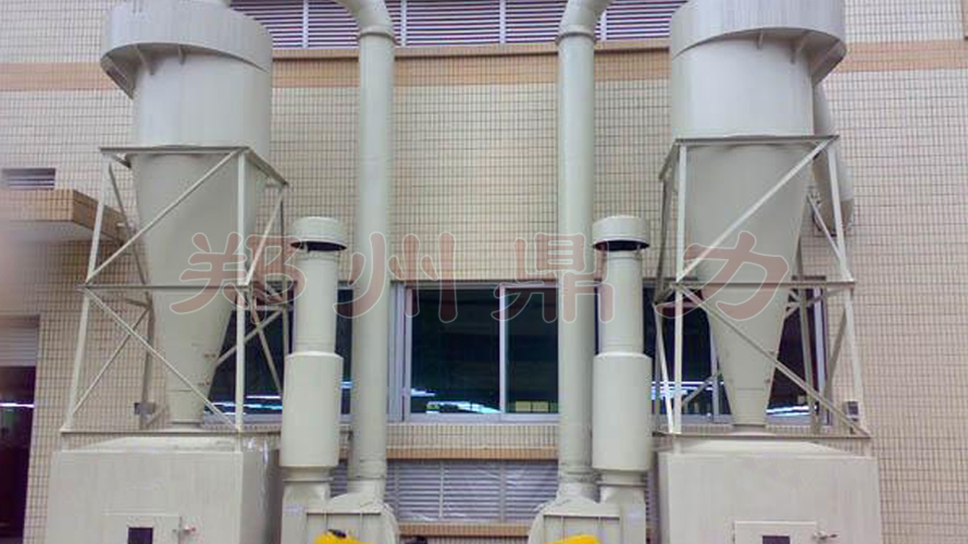 結(jié)構(gòu)簡單、外錐體收縮角較小、排氣管呈錐形、筒內(nèi)設(shè)反射屏。本處塵器具有處理能力大、收塵效率高、設(shè)備阻力低于擴散式旋風除塵器的優(yōu)點。在入口濃度和粉塵粒度變化較大時,除塵效率波動較小。因此,它具有較廣泛的適用性。在水泥生產(chǎn)中,它與選粉機、烘干機配套使用均取得顯著的收塵效果。